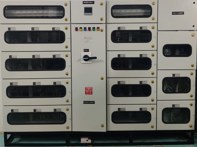 Meter panel board for multiple meter compartments. Metering panels are the indoor and outdoor type which confirms to IP52 degree of protection, All metering panels are properly pre-treated & then powder coated. Some of the salient features of our metering panels. Meter panel board totally enclosed, self-supporting, floor mounted, dust and vermin proof, enclosure fabricated out of 14G/16G, CRCA sheet steel enclosure with 7 tank process.
